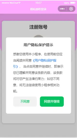 注:插件导入即可,触发微信API方可自动调用,打开协议弹窗