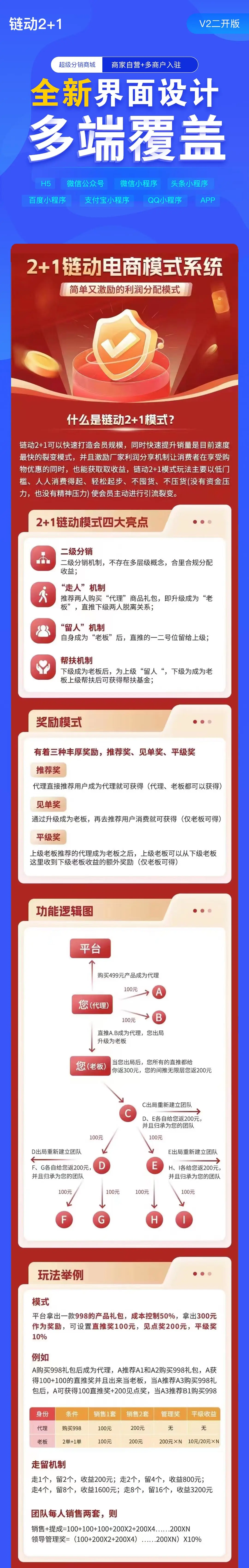 链动2+1可以快速打造会员规模,同时快速提升销量是目前速度最快的裂变模式,并且激励厂家利润分享机制让消费者在享受购物优惠的同时,也能获取收益,链动2+1模式玩法主要以低门槛、人人消费得起、轻松起步、不囤货、不压货(没有资金压力,也没有精神压力)使会员主动进行引流裂变。