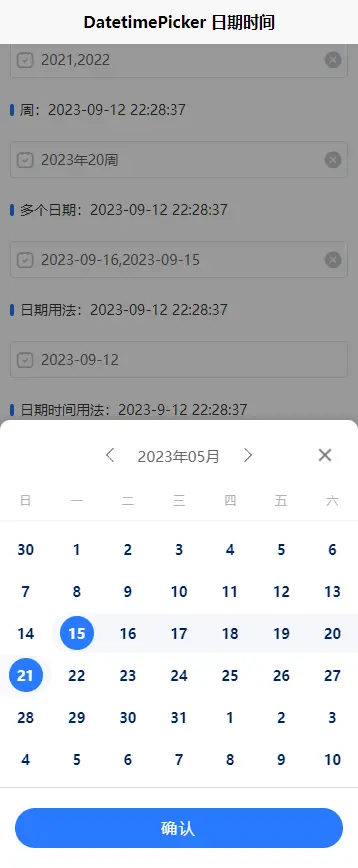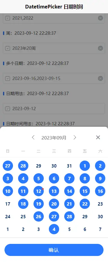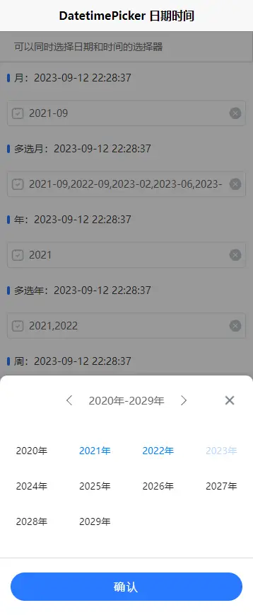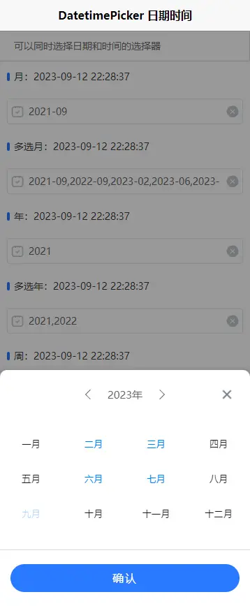 DatetimePicker 时间选择器(添加多选日期、多选年、多选月、单选年、单选月、选择周)新增的属性暂时不支持PC端