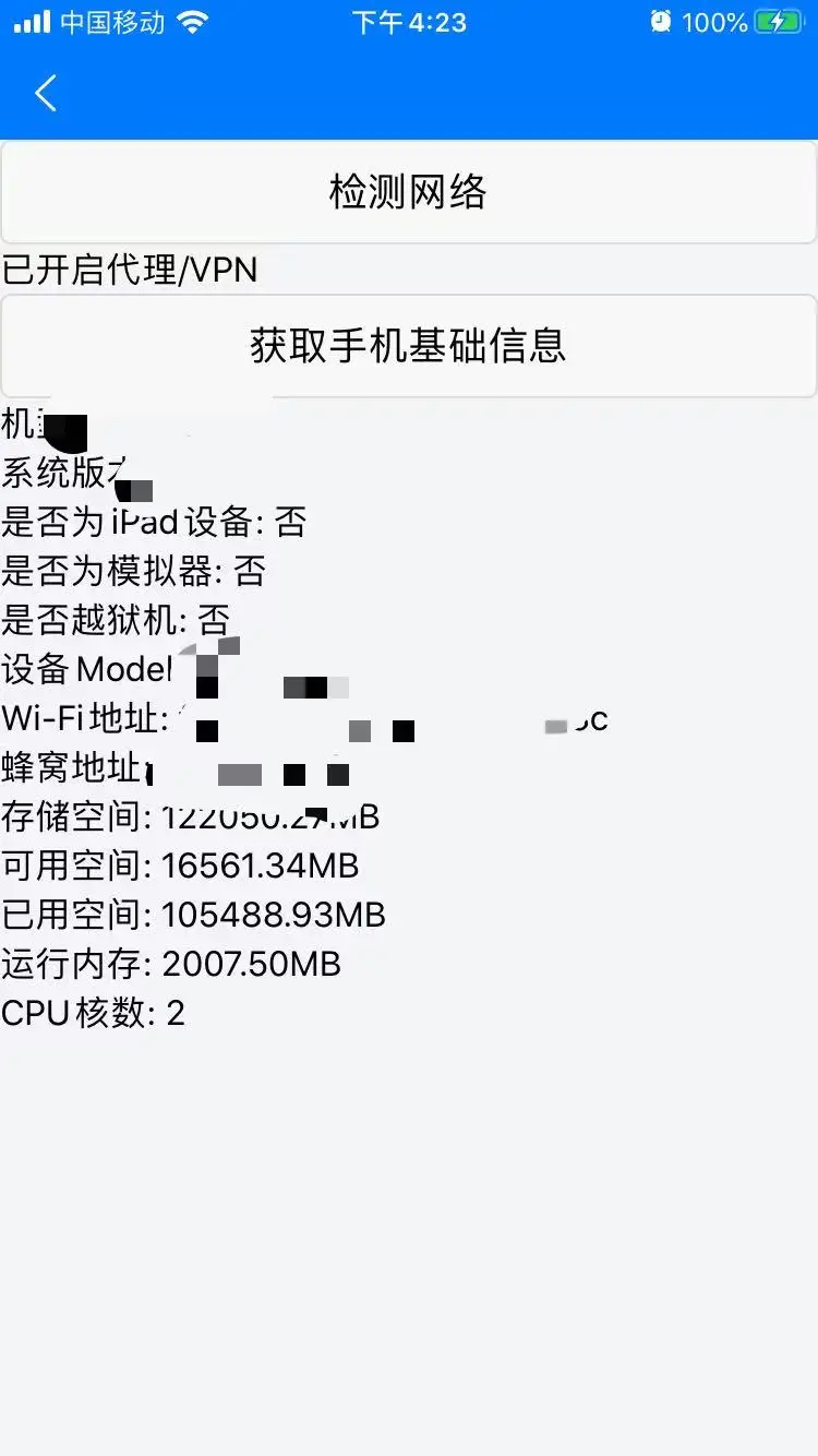 <view>是否越狱机: {{mobileInfo.isJaibroken?'是':'否'}}</view>