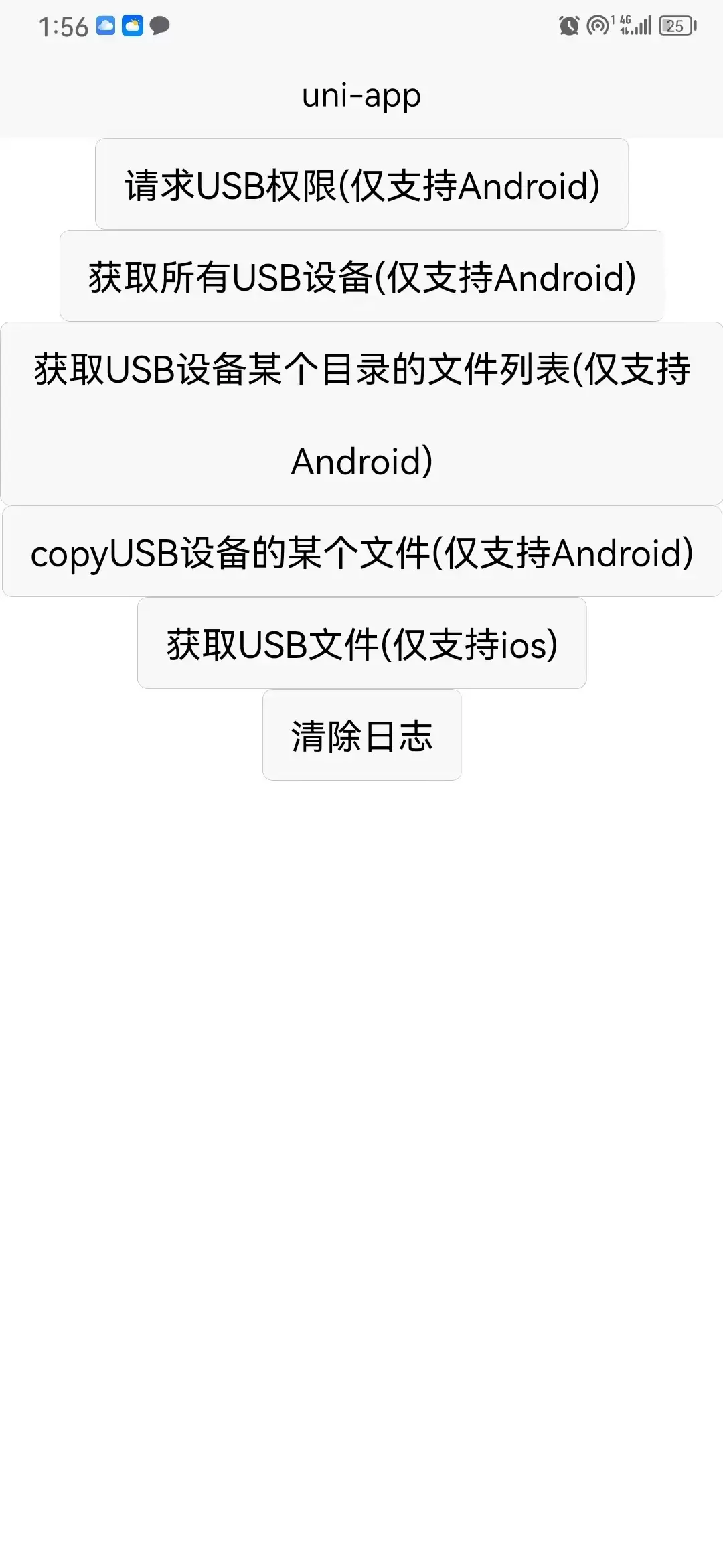 - 获取USB文件(仅支持ios,iOS是通过调用系统到文件选择器选择文件后保存到app到某个目录下,有些U盘可能不支持iPhone,iPhone连接U盘,打开系统的“文件”app,查看是否识别到U盘)