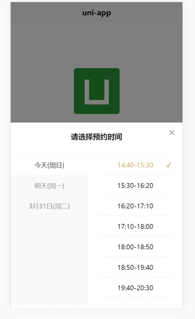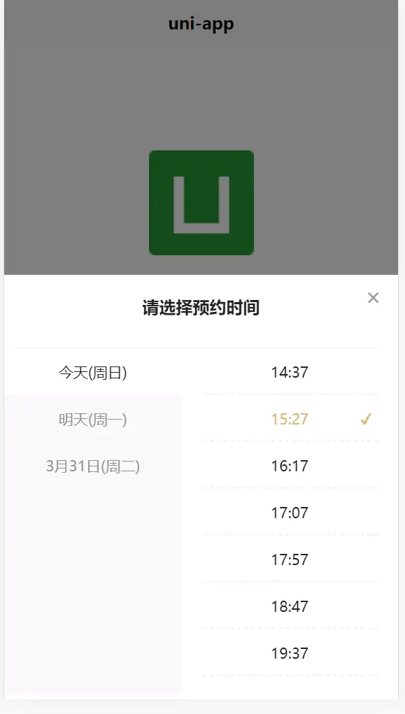 预约时间弹窗组件。
