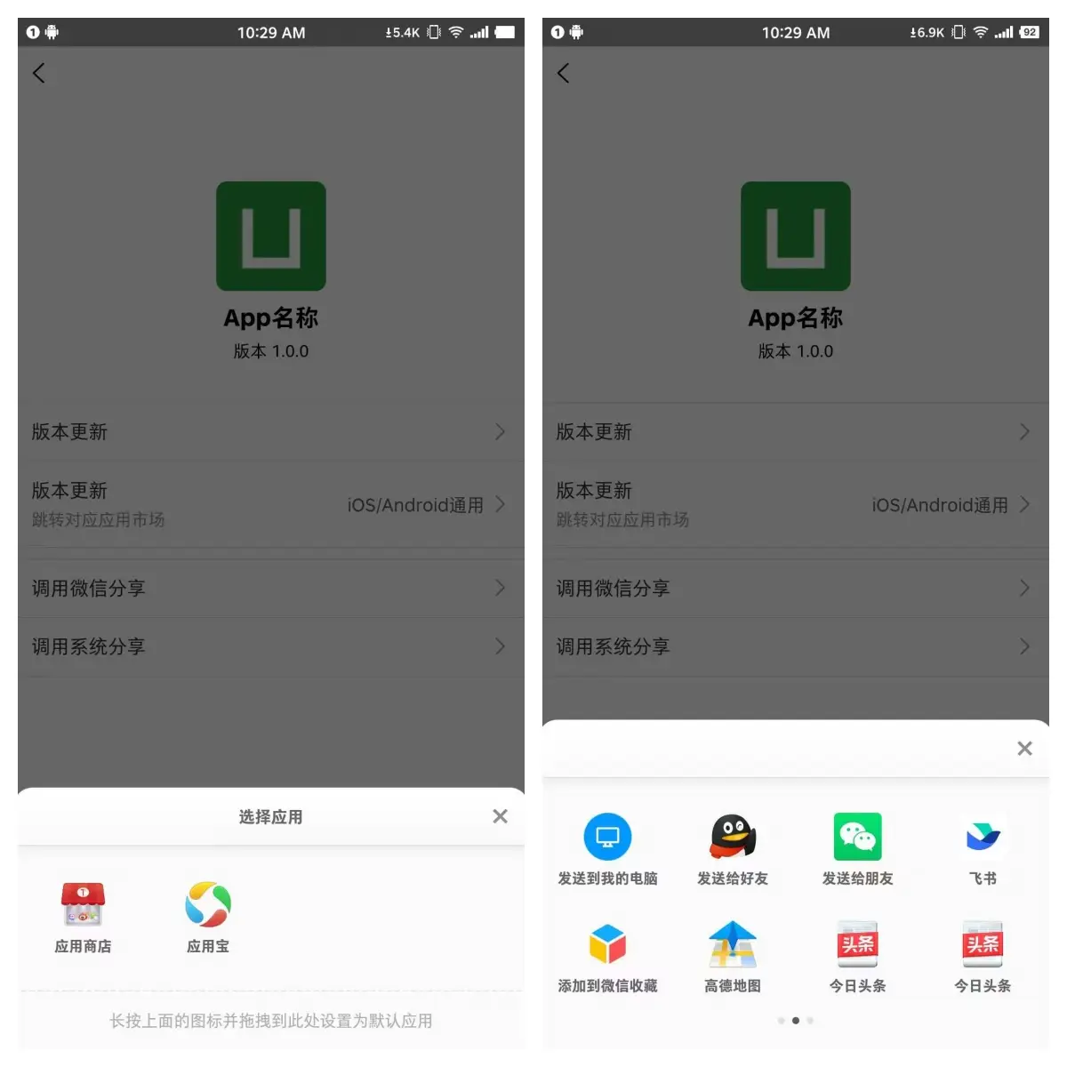 - 支持配置微信分享,没有第三方分享可以使用系统分享