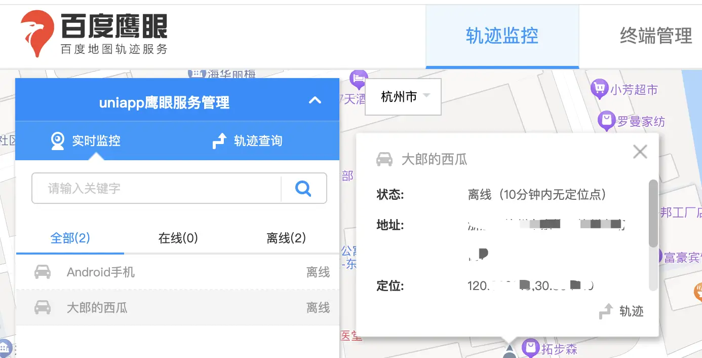 鹰眼轨迹管理后台:https://lbsyun.baidu.com/trace/admin/service