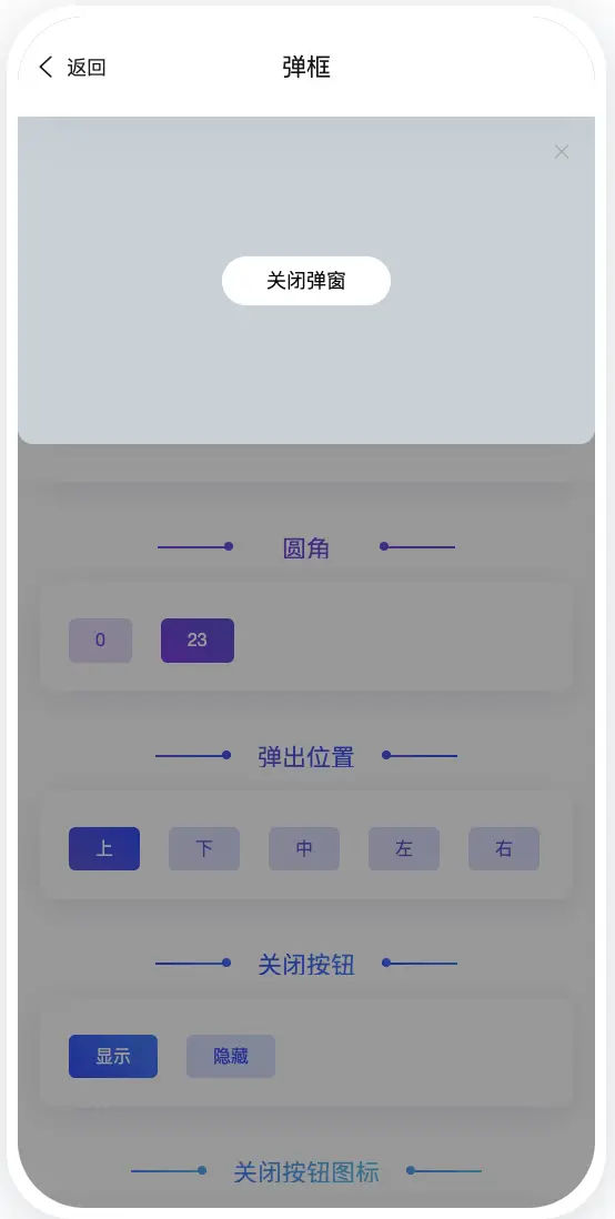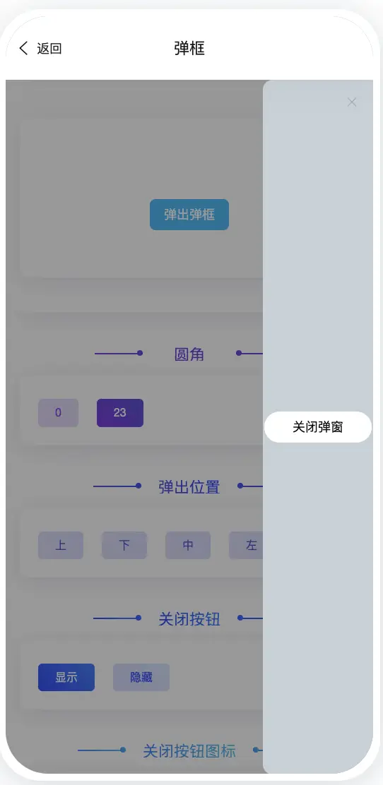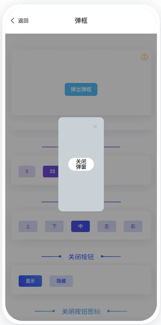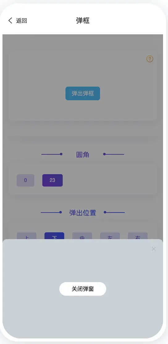 弹出层容器,用于展示弹窗、信息提示等内容,支持上、下、左、右和中部弹出。组件只提供容器,内部内容由用户自定义。提示