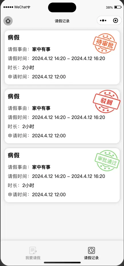 | leaveList | 是 | Array | () =>[] | 请假记录数组 |