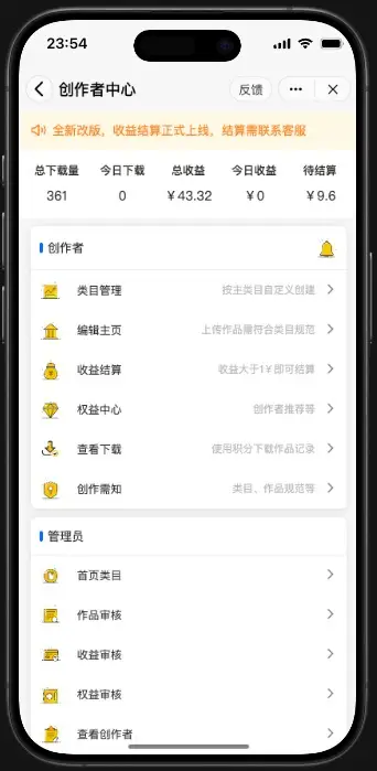 - 10.关于创作者收益计算,目前按照每次有效下载0.12元,具体逻辑查看云函数manage/index.obj.js:36行代码