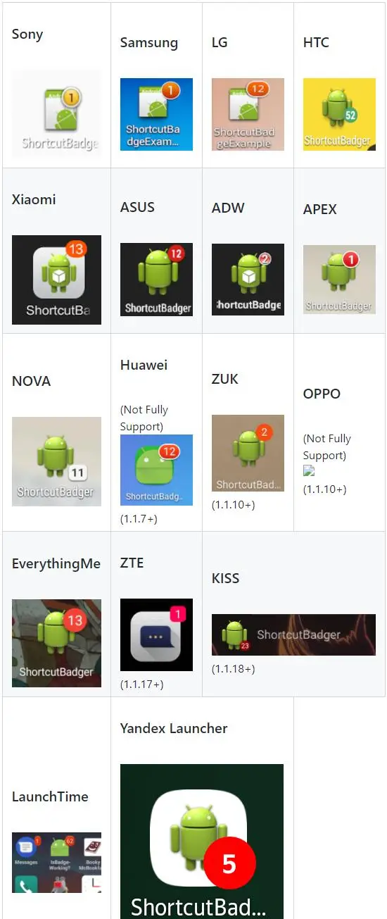 - 支持机型有Huawei、oppo、xiaomi、Samsung、Sony、LG、HTC、ZUK、ASUS、ADW、APEX、NOVA、EverythingMe、ZTE、KISS、LaunchTime、Yandex Launcher等等