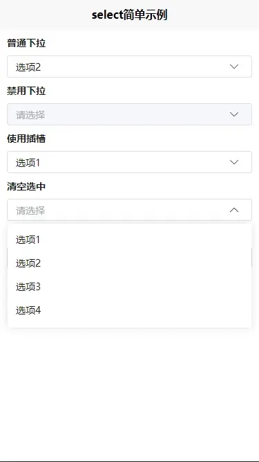 <yh-select :data="list" v-model="selectVal1"></yh-select>
