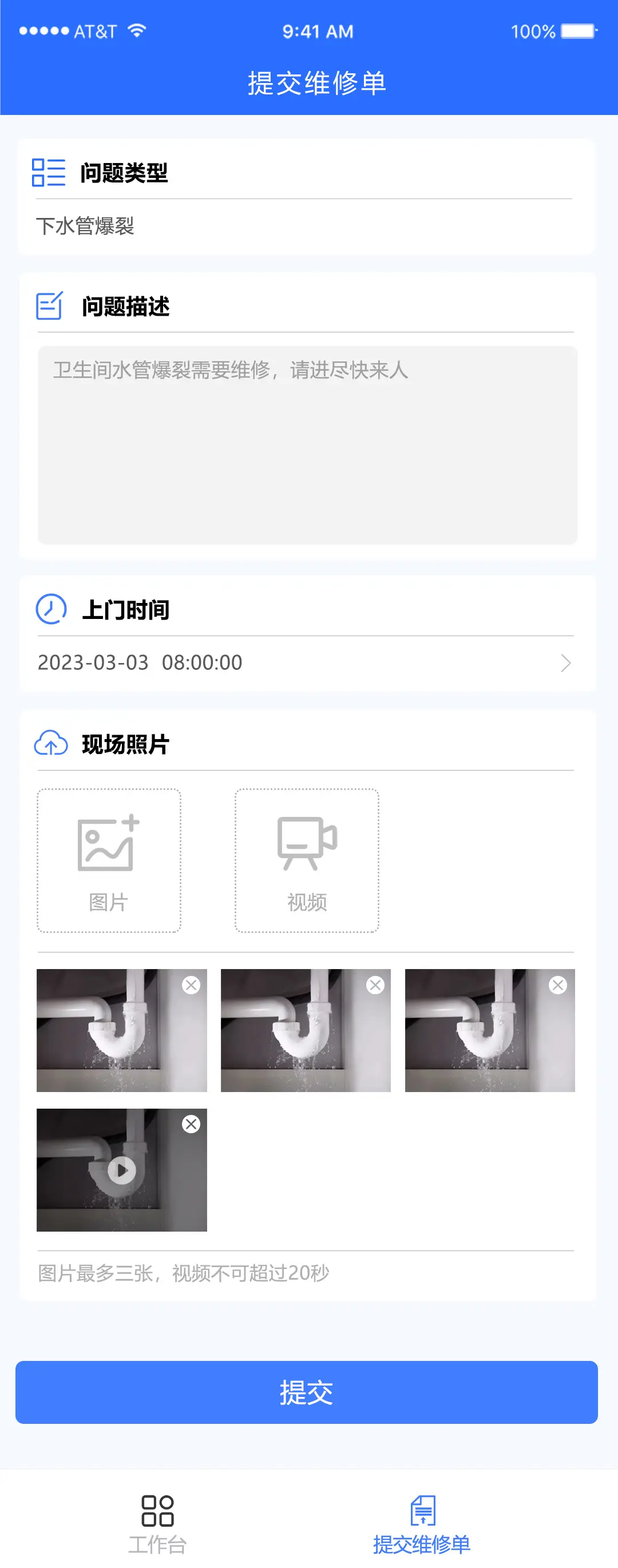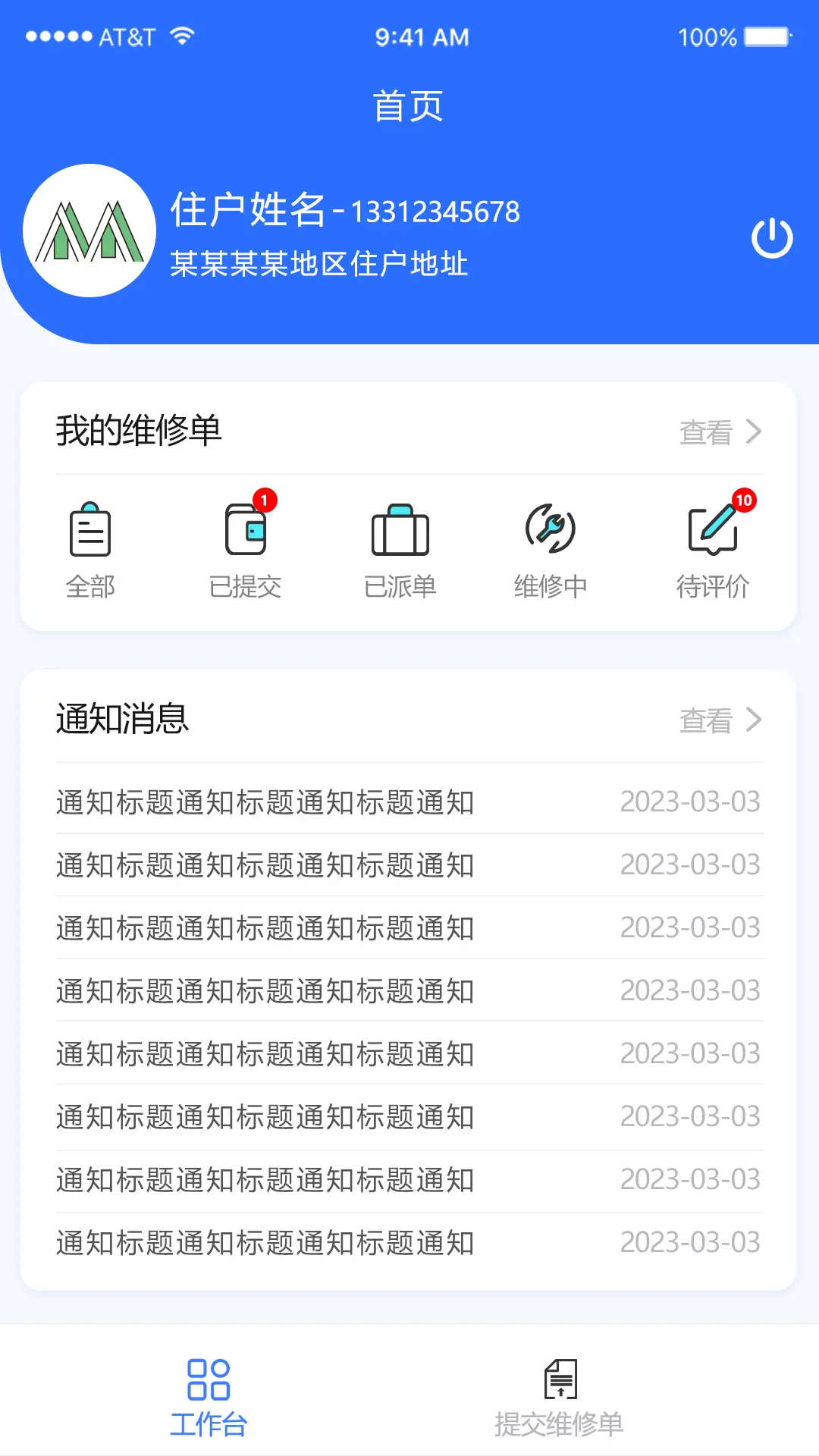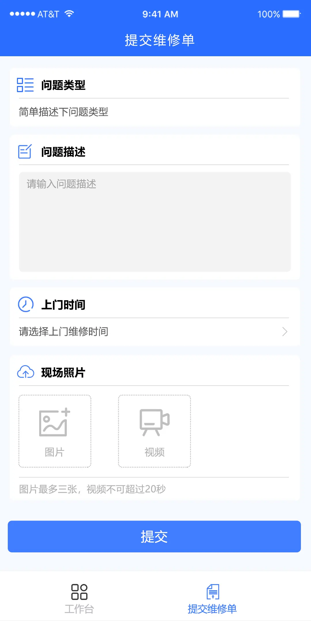 业主维修单下单APP主要为业主服务,提供了服务项目查看、业主下单、维修单查看、评价等功能。