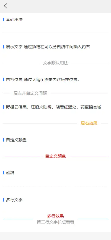 <shaoll-divider align="left" margin="10rpx">居左并自定义间距</shaoll-divider>