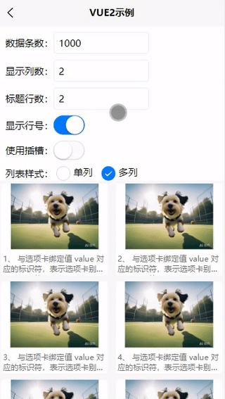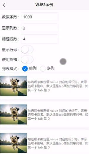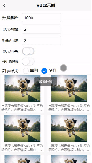 本组件适用大量数据下的列表渲染,渲染效率高,不卡顿;采用懒加载、虚拟渲染的思想,丝滑滑动渲染功能!