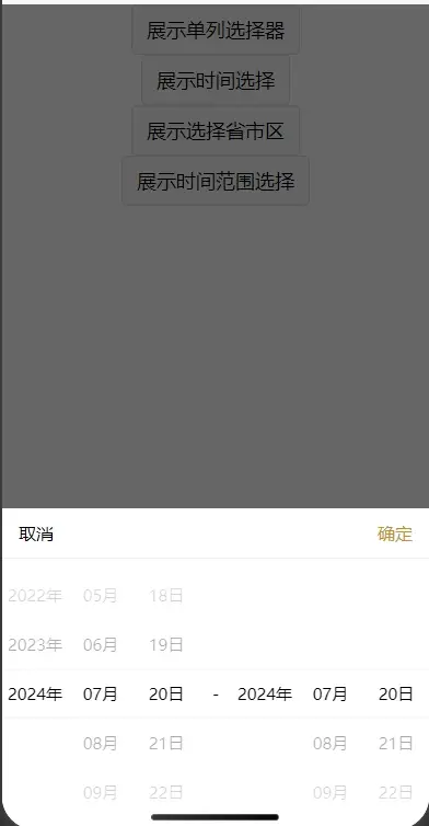 | mode | picer类型 | string | / | selector/shortTerm /region/range /half/time |