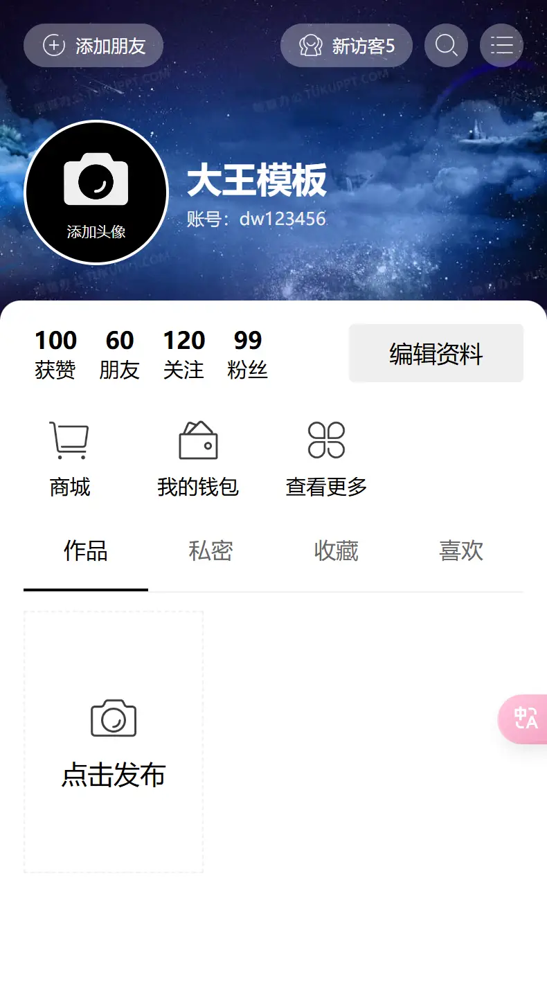 搜索“大王模板”查看全部页面模板 每天一款新模板,有需求请留言,优先安排需求较多的模板