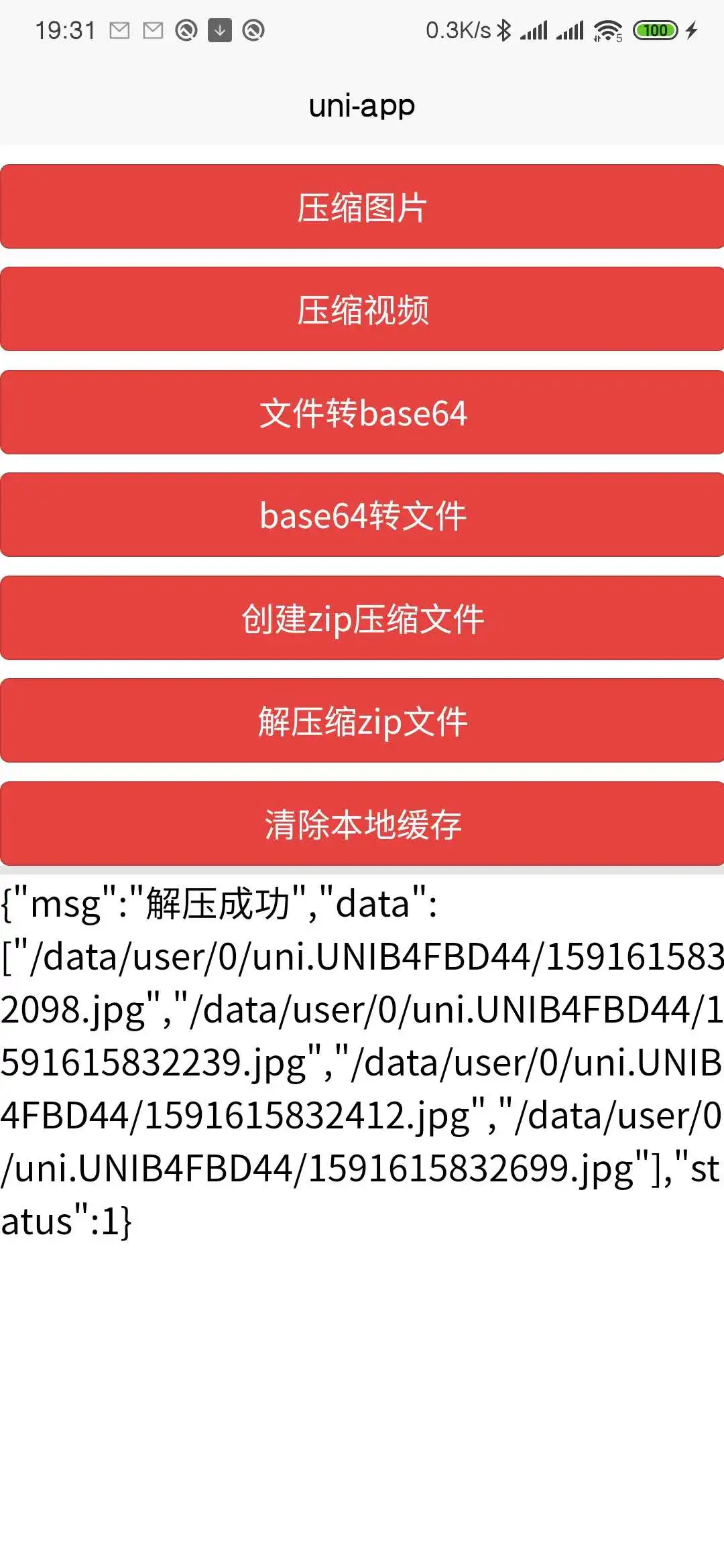 * unzipFile(压缩包文件的绝对路径, 处理结果)