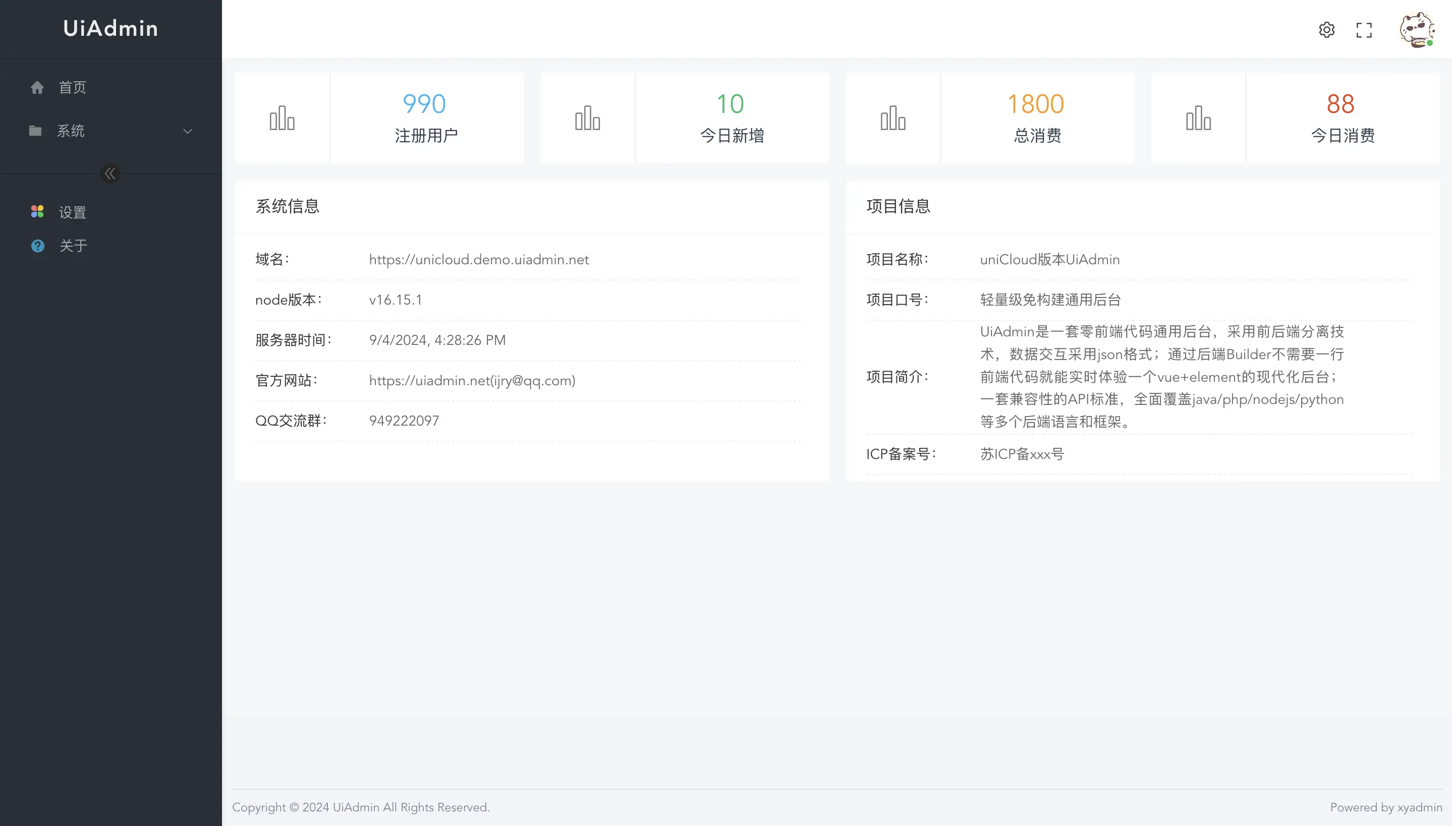 https://unicloud.demo.uiadmin.net/uiadmin-api/core/index/xyadmin
