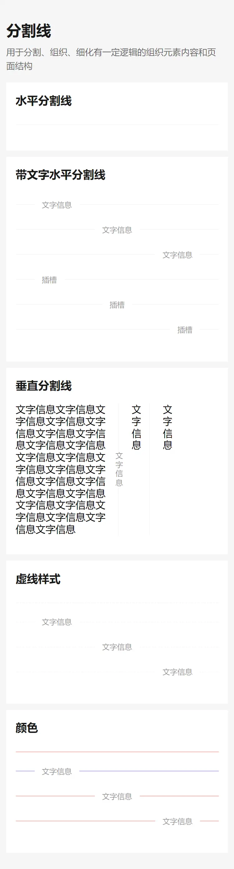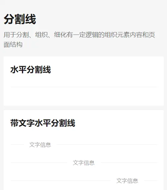 一个分割线组件,用于将内容分隔为多个区域,支持水平和垂直分割线,可以在分割线中间插入文本内容。