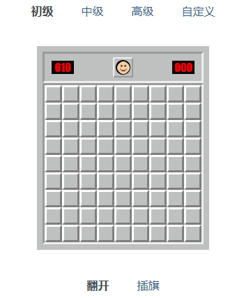 - 每个格子的状态:bomb 是否是存在雷的格子,bombCount 当前格子周边格子的雷的数量,flag 当前格子是否被插旗,opened 当前格子是否被翻开;