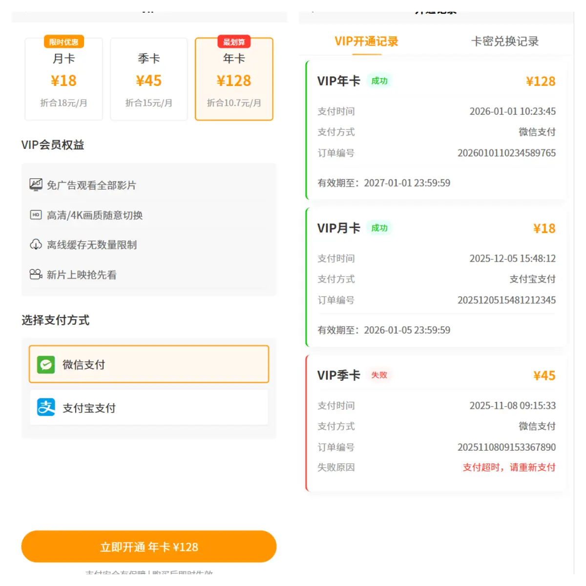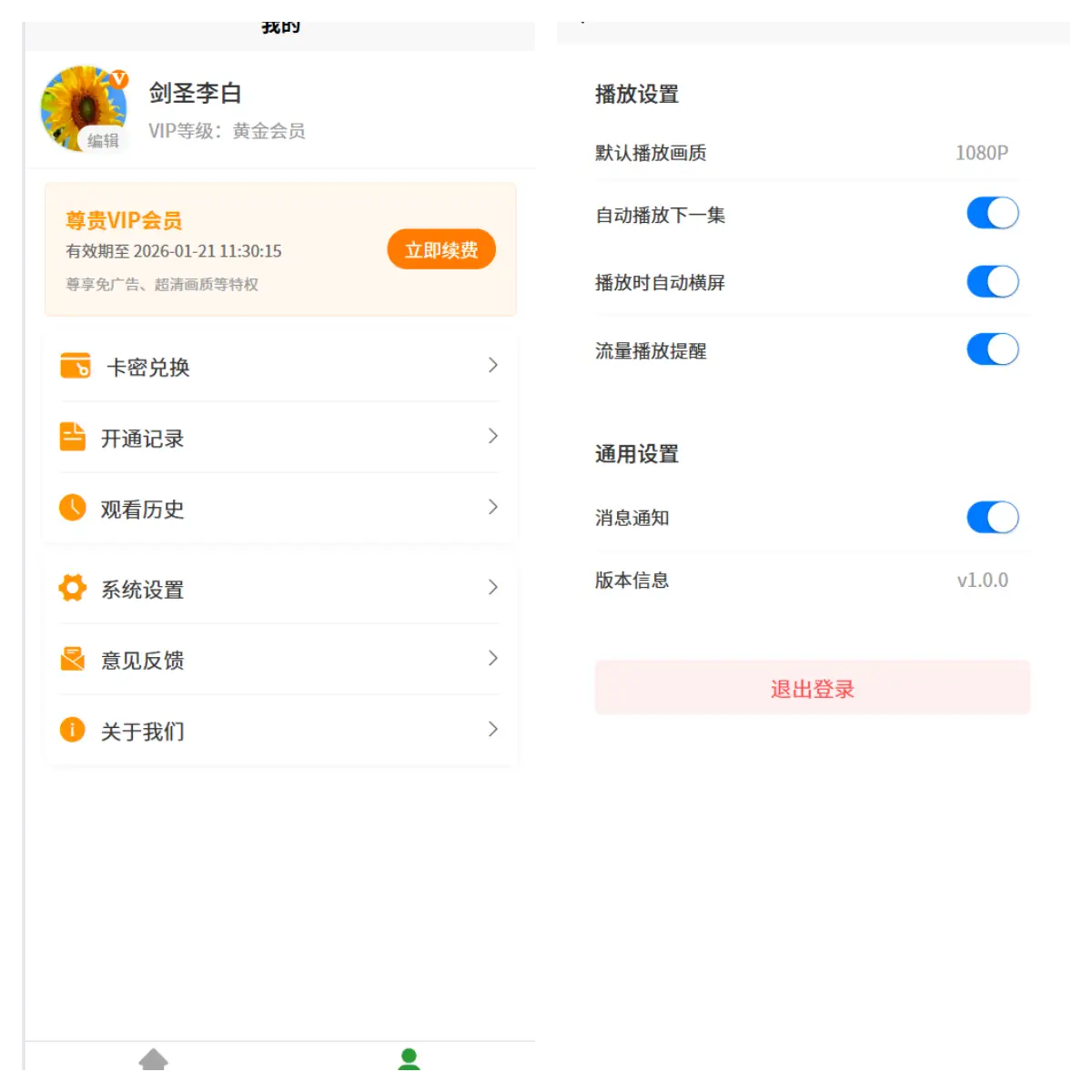 -1、会员登录中心管理(个人信息修改,会员等级展示) -2、卡密生成兑换,包含兑换记录 -3、vip会员购买(已实现页面逻辑订单列表,因本人没有支付资质所以对接不了支付,但是逻辑页面都已写好) -4、用户意见反馈信息 -5、观看历史记录支持删除