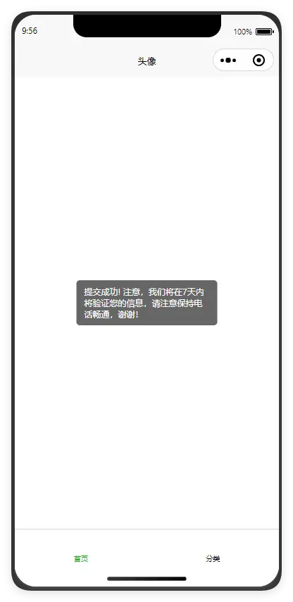 content:'提交成功! 注意,我们将在7天内将验证您的信息,请注意保持电话畅通,谢谢!',
