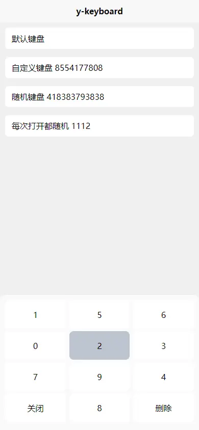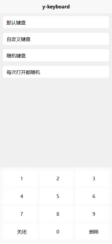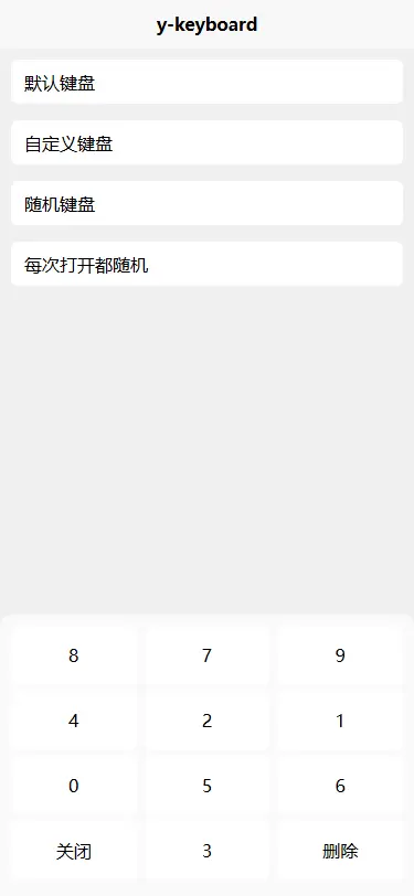 数字键盘,可随机生成数字键盘和自定义数字键盘的关闭按钮和删除按钮。