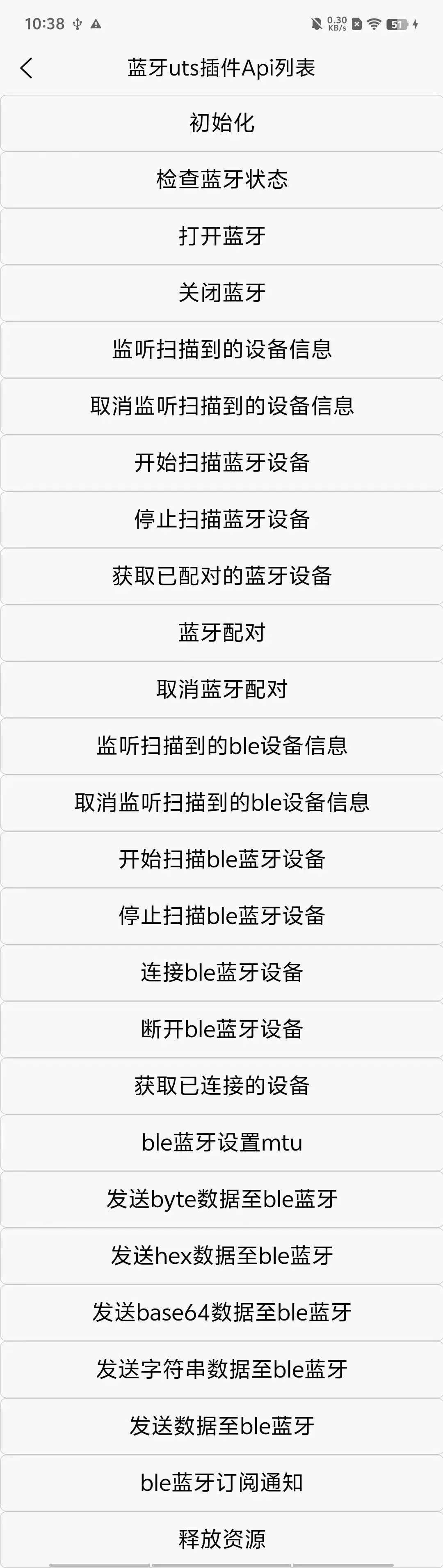 - scan:扫描到经典蓝牙事件,将通过此事件进行通知设备信息 (如使用ts 可导入 VinBluetoothDevice)(ios暂不支持)