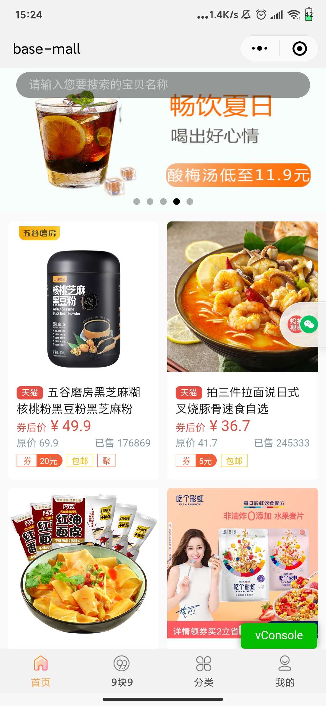 淘宝优惠券整体使用uniCloud来完成主要是为了避免H5端接口签名等信息暴露,采用云函数方式,云函数端注入appSecret等参数,后续有时间拓展后台用户管理,购物车云端数据存储,持续更新中.... 淘宝优惠券使用大淘客API接口(http://www.dataoke.com/) 预览地址:https://static-2ca95cc0-7782-43d9-8895-02ec45e6ebb6.bspapp.com/#/