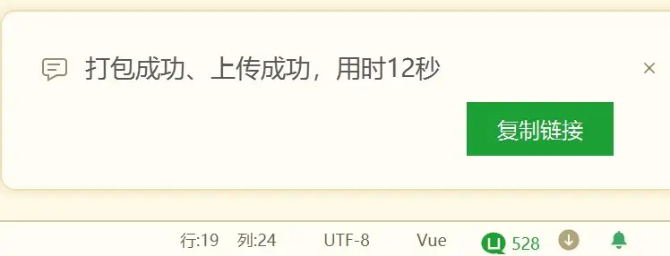 - 配置完成后,点击 一键打包并上传,插件会自动完成打包和上传操作。