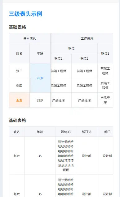 - ✅ 多级表头:支持到三级表头