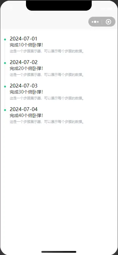 <view class="dis">这是一个步骤展示器,可以展示每个步骤的数据。它是灵活的,你也可以把它当做时间树。</view>