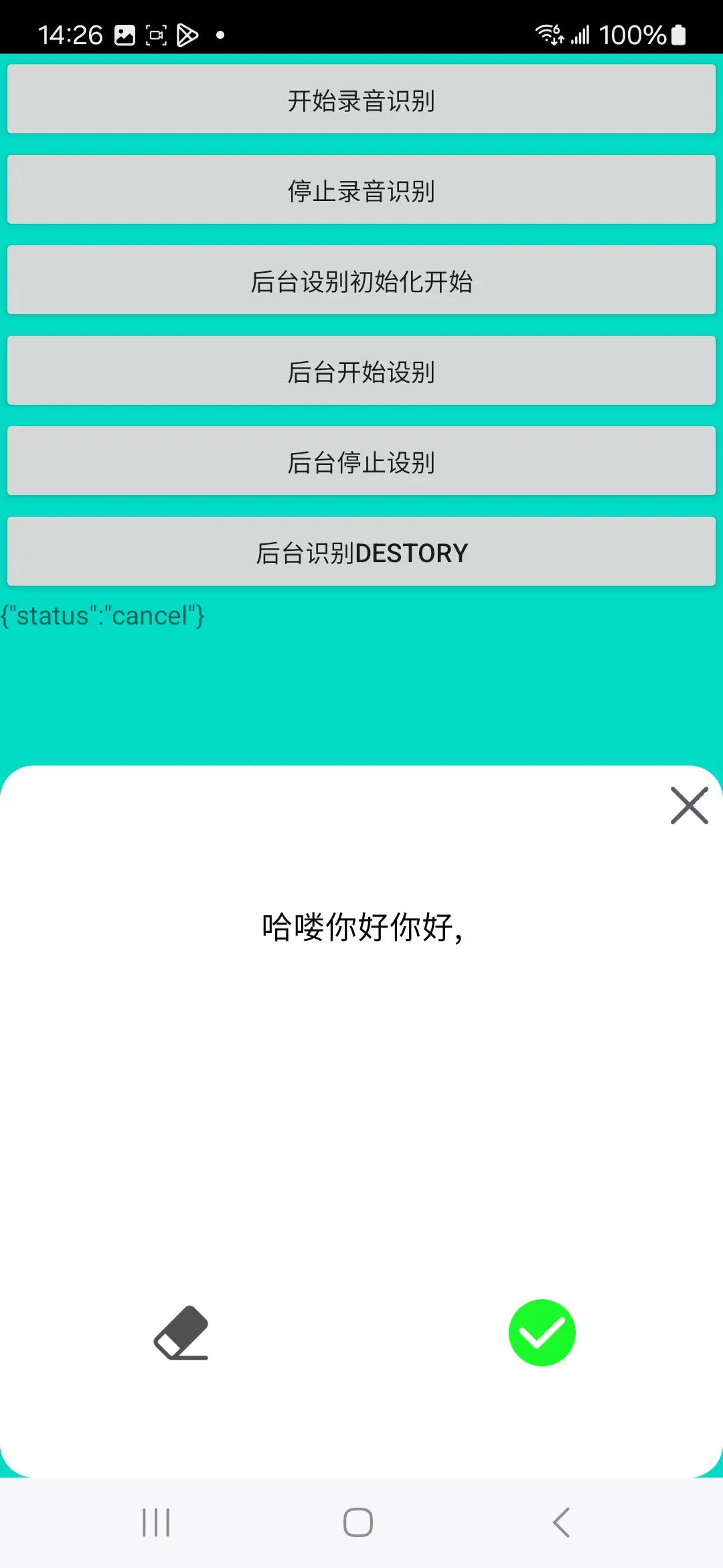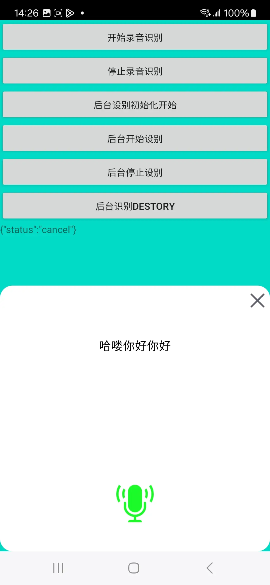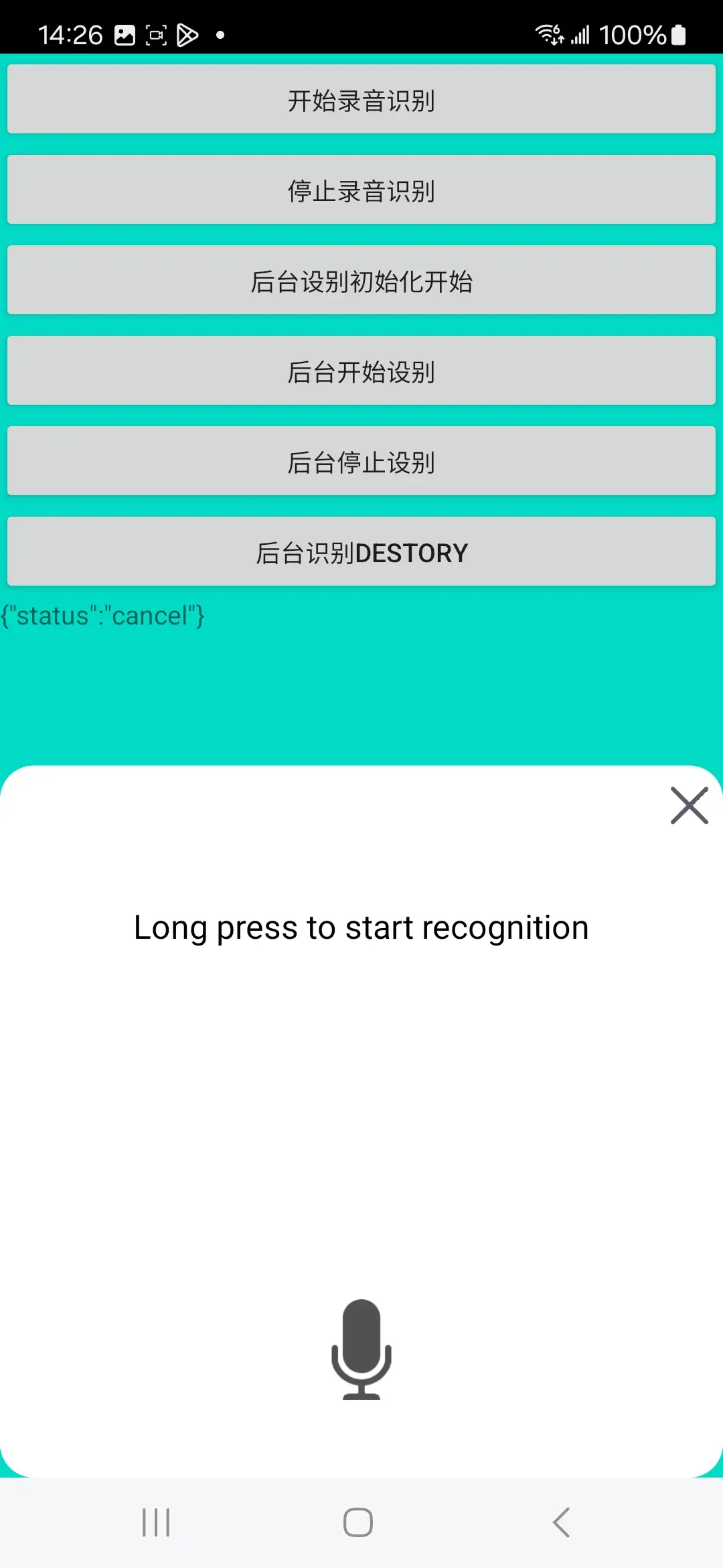 function asrRecognizeWithoutUIDestory() 后台识别第五步