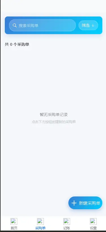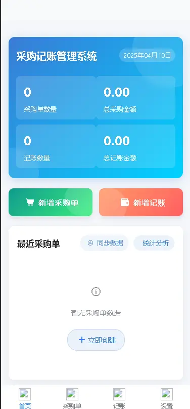 开发一款记账和采购管理应用,重点是支持采购订单的创建、管理和可视化展示。