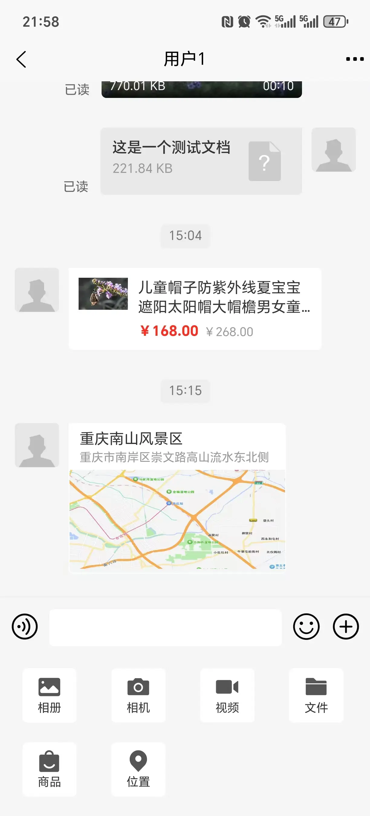 - 图片、音频、视频、文件消息,需要自己实现上传,返回可访问的url地址,演示中目前是写死的对应url;