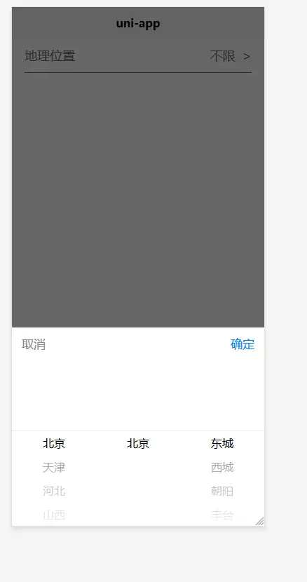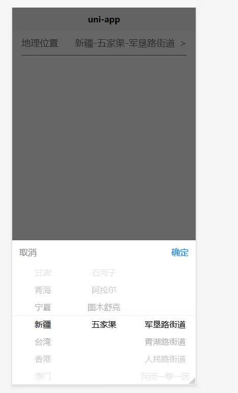 //本插件可以直接使用,无需引入任何资源 v1.0 使用原生picker制作 可以使用接口地址,根据实际需求,接口传参获取地址 自行修改方便,希望大家多多提出意见