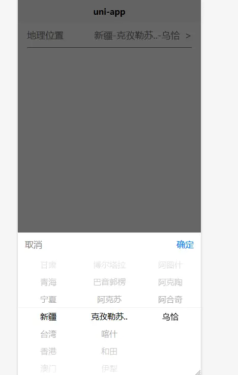 由于公司需求,省市区选择需要根据接口地址传值来获取,使用原生picker制作,无需引入任何插件,原生制作,直接在界面中使用