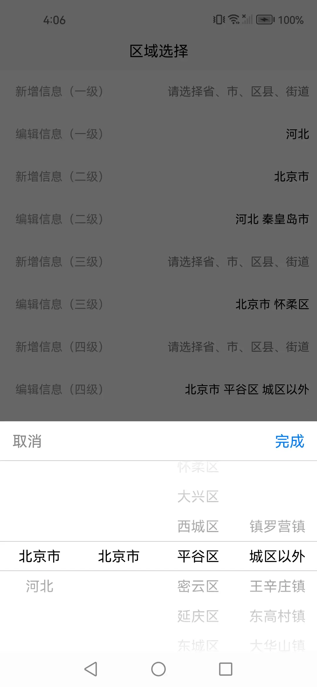 | | selected:['北京市','北京市','平谷区','城区以外'], //初始默认选中,可使用 id 和 title 两种方式,用 title 方式时请确认记录数据和获取数据名称一致 |