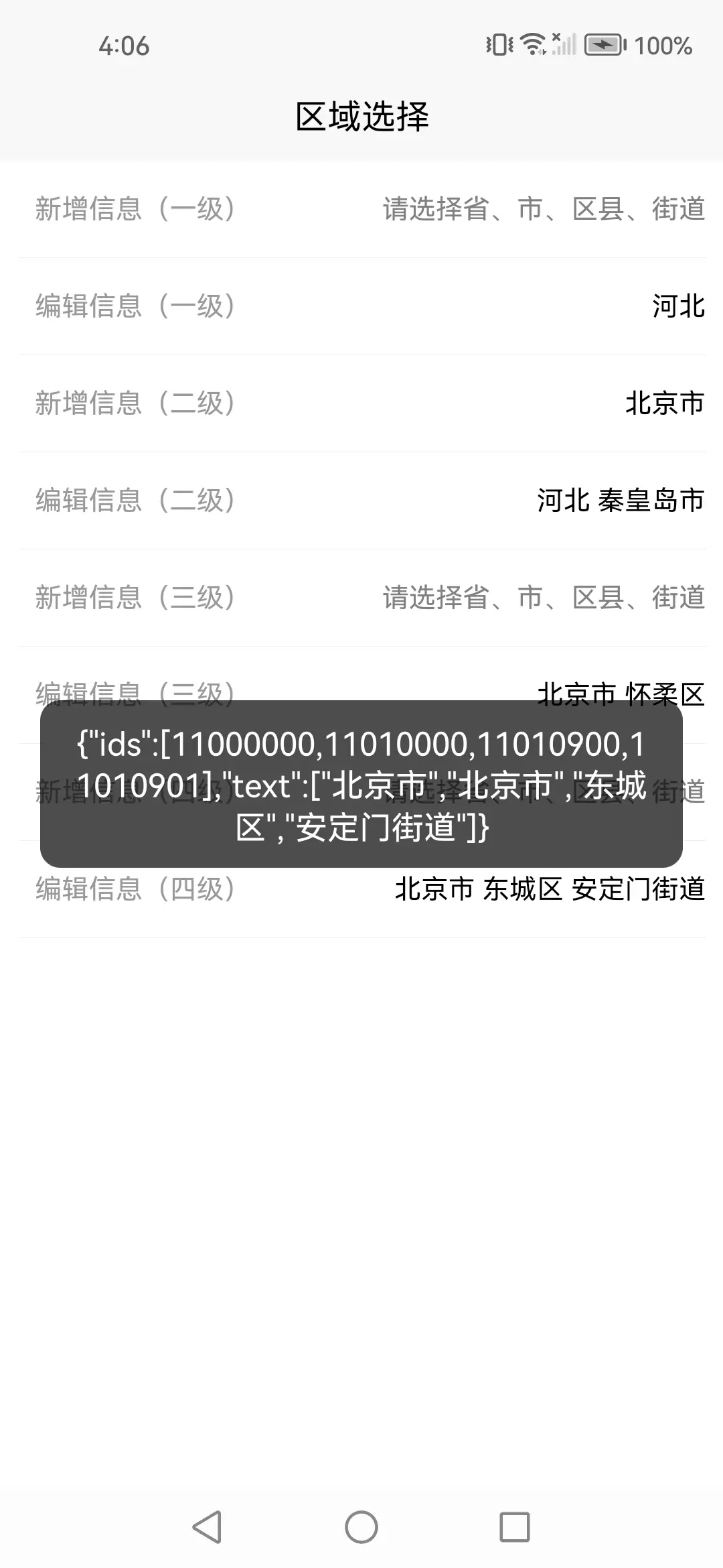 | | place:'请选择省、市、区县、街道', //picker placeholder,默认值:请选择省、市、区县、街道,非必传 |