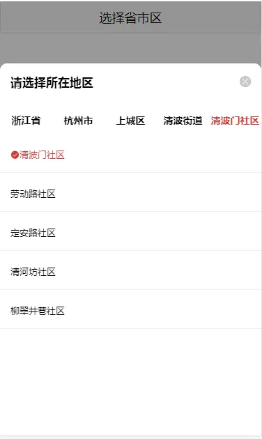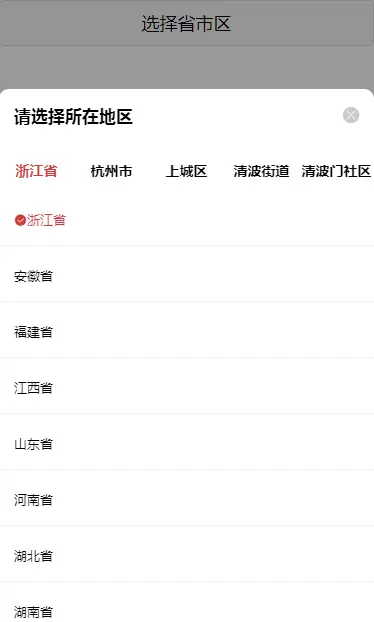 组件省市区数据是通过接口,可以修改接口地址使用自己的省市区数据,(接口在pca-http.js内的BASE_URL).
