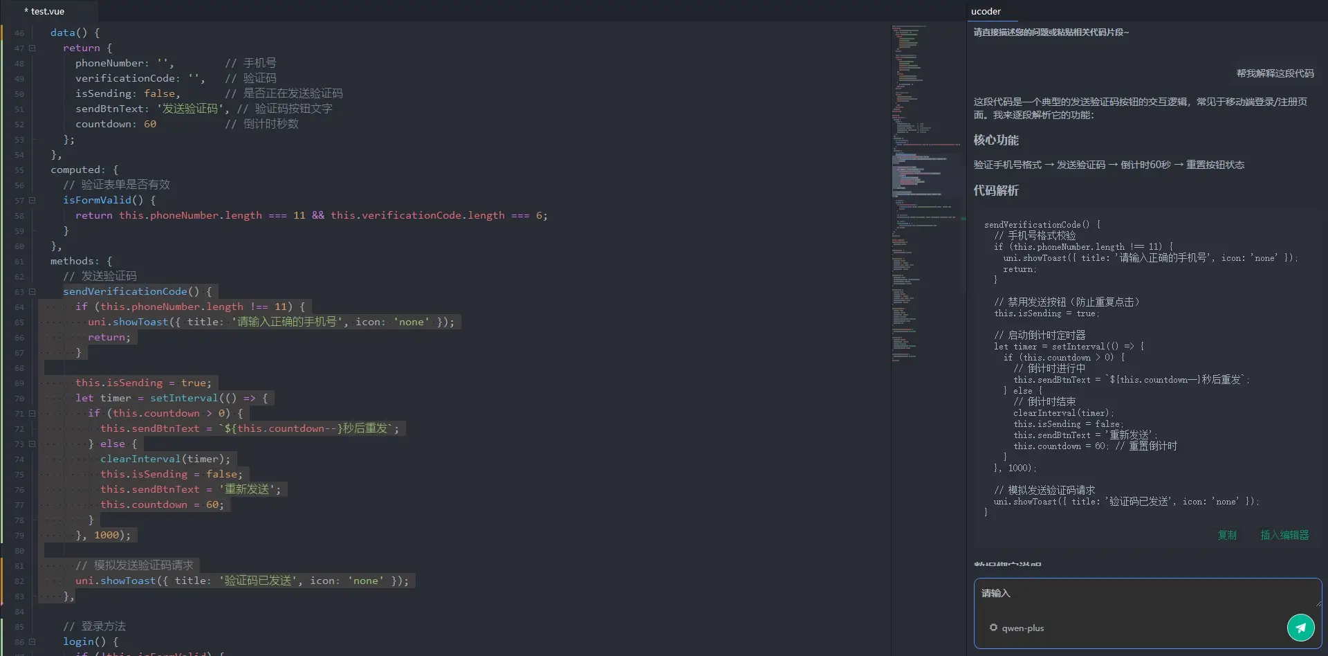 - 右键选择 ucoder-解释代码