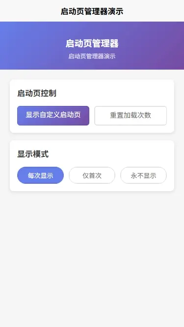 SPLASH_MODES.ALWAYS: 每次启动都显示SPLASH_MODES.ONCE: 仅首次启动显示SPLASH_MODES.NEVER: 永不显示