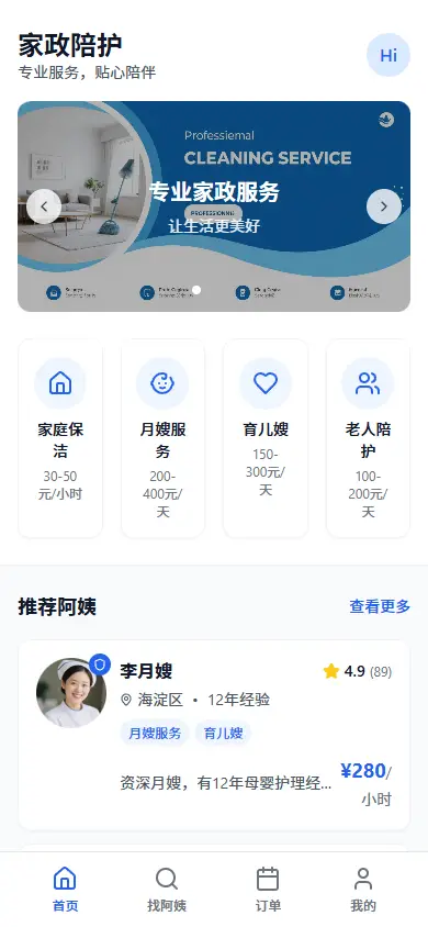 家政陪护预约系统是一个专业的家政服务预约平台,采用React + TypeScript技术栈开发,支持移动端优先的响应式设计。系统提供双角色模式,既支持普通用户预约家政服务,也支持家政从业者接单管理。