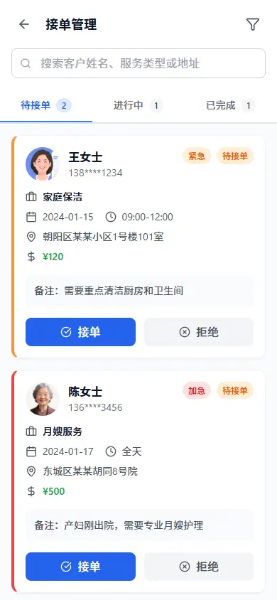 家政人员接单