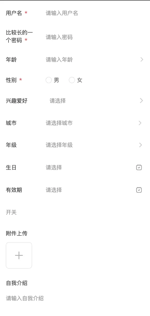 除动态表单的形式,增加了插槽可以更灵活的使用其他表单组件 内置新增了forms-item、switch、datetime-picker组件配套使用,符合当前的UI风格