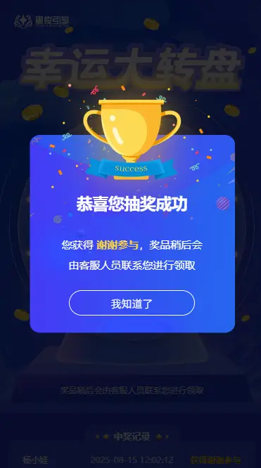 - ✅ 中奖弹窗:美观的中奖提示弹窗