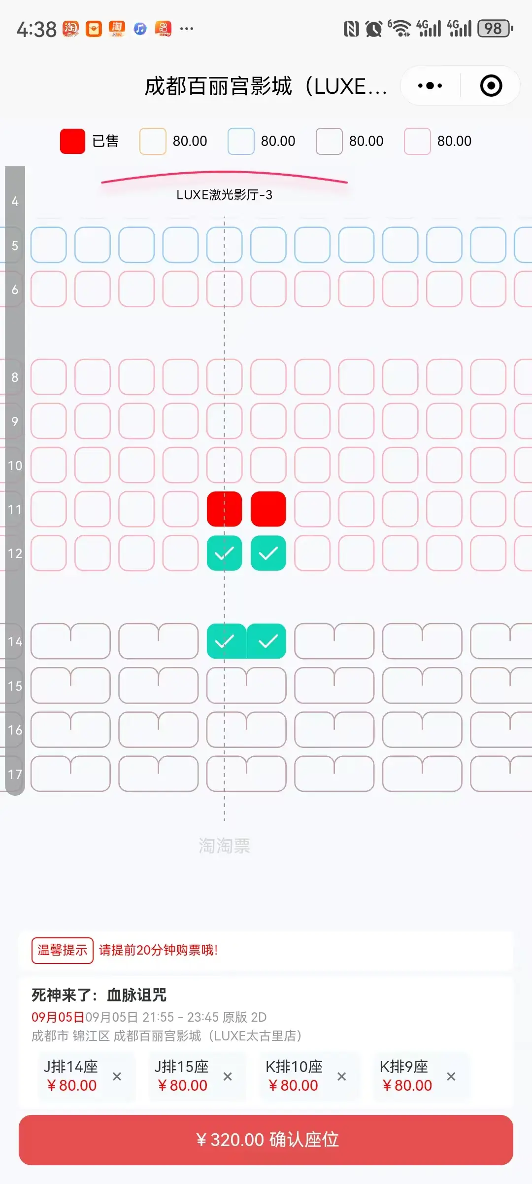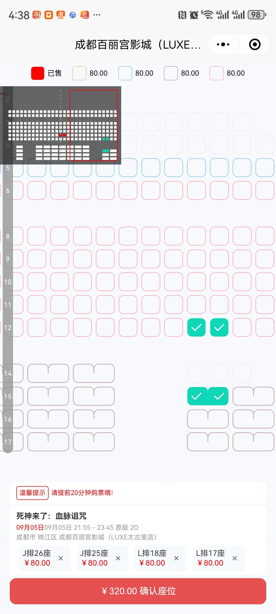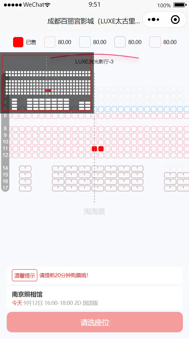 基于 Canvas 的影院座位图组件,支持微信小程序 H5 支付宝小程序。
