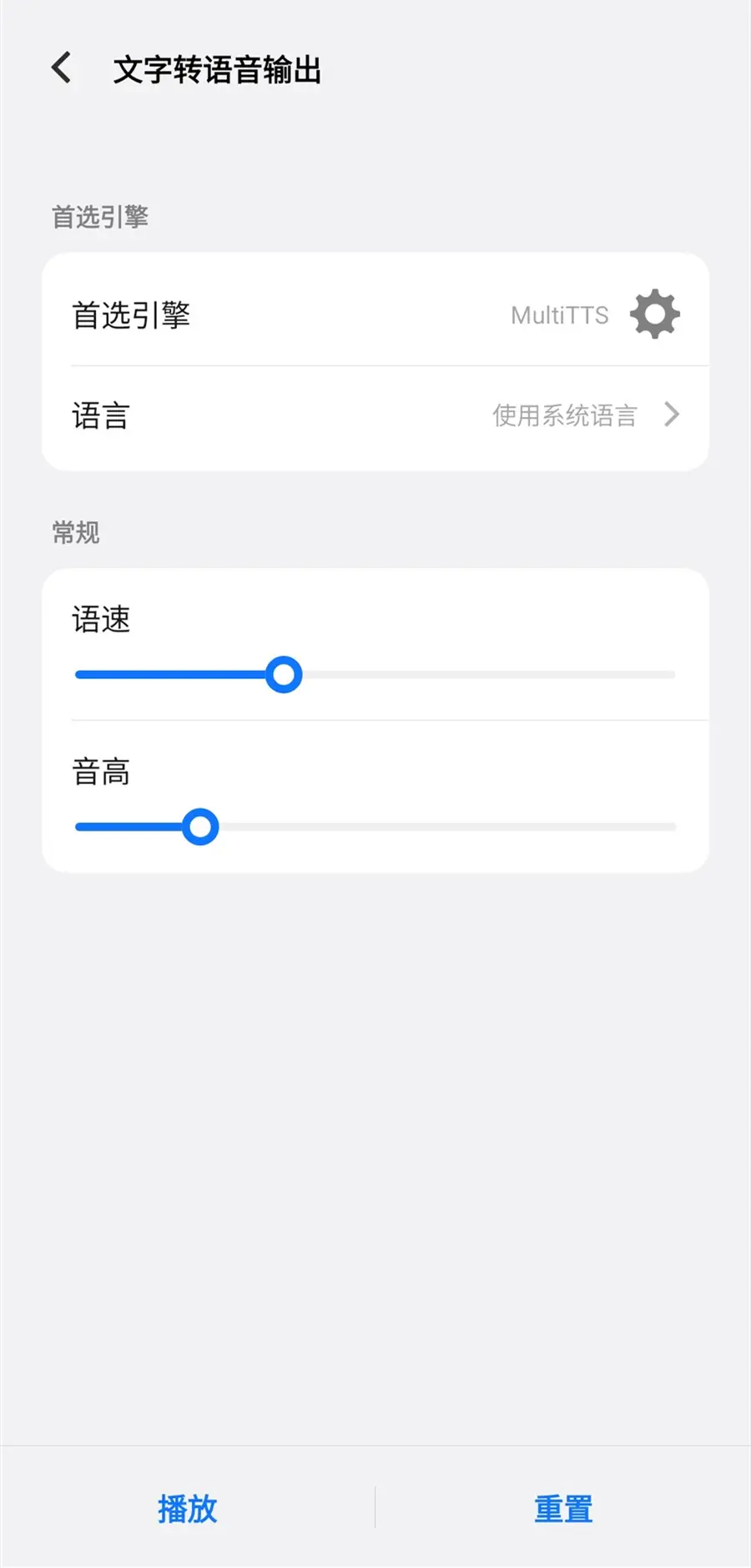 调用安卓自带TTS功能实现语音播报、小说朗读。 可以在本机安装第三方TTS,例如MultiTTS,然后导入各种离线语音包。