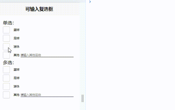 将复选框与输入框组合封装成组件,支持单选/多选模式,可自定义样式。