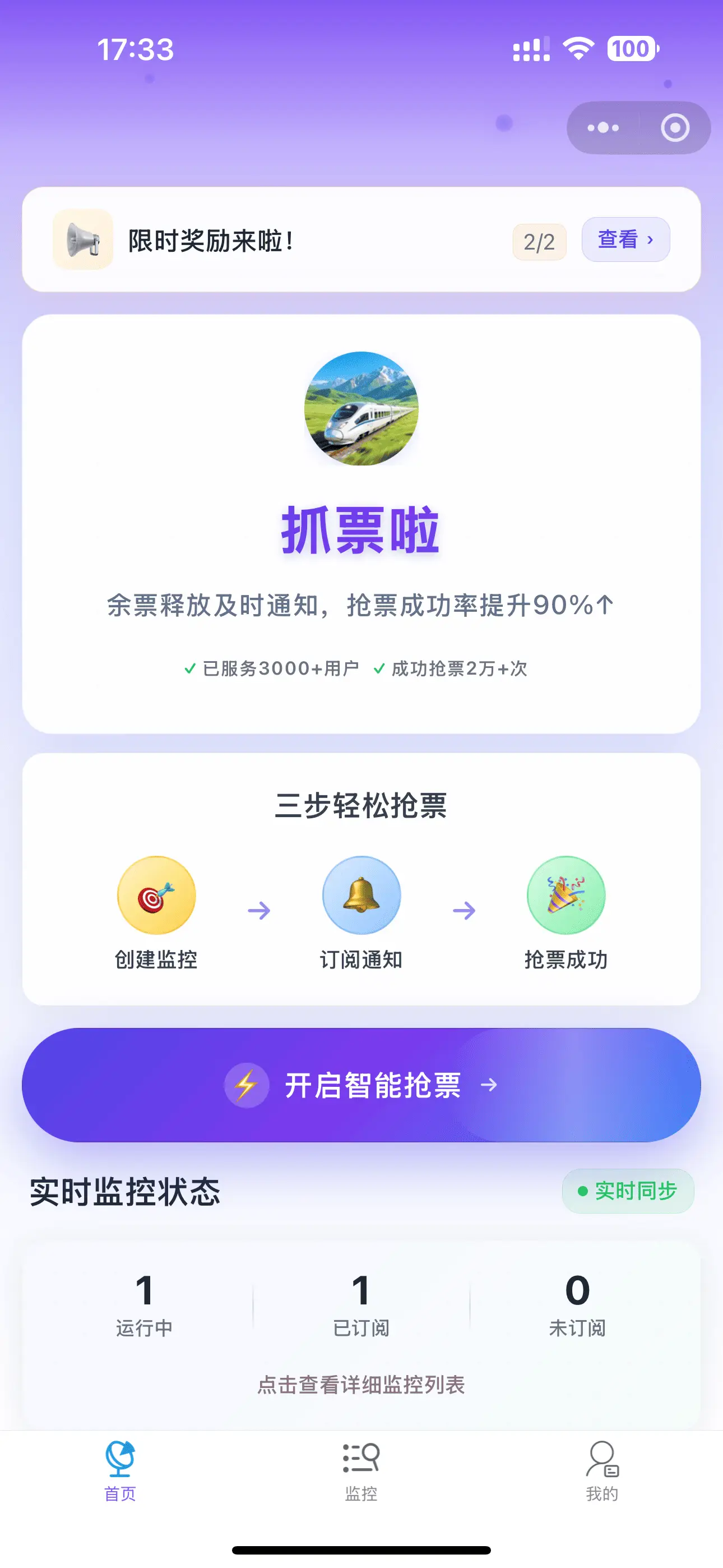 - 🎯 智能监控 - 实时监控余票变化,自动推送通知