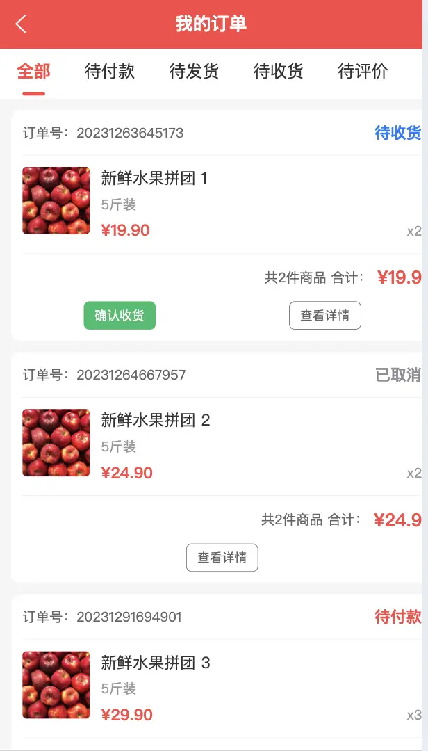 - 订单页 - 拼团订单、普通订单、订单跟踪