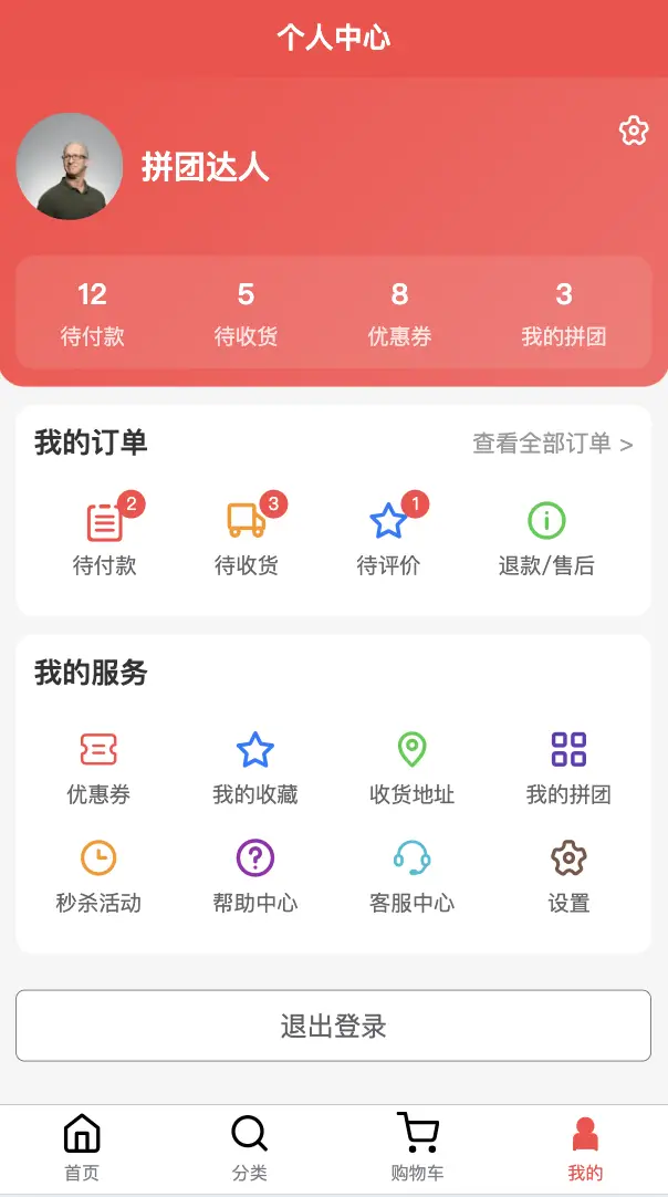 - 个人中心 - 用户主页、拼团管理、收货地址